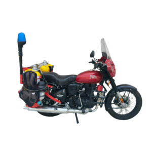 Fire fighting bike is especially design for rapid response in emergency fire situations, especially in areas where larger firefighting vehicles may struggle to reach. This compact yet highly efficient firefighting unit is equipped with two numbers 9 liter Backpack fire extinguisher ensuring an adequate supply of extinguishing agents. By leveraging advanced water mist and CAFS technology, the system provides superior fire suppression while minimizing water usage, making it an eco-friendly and effective solution. With its innovative design, quick deployment capability, and effective fire suppression technology, the Bike-Mounted unit is an essential tool for first responders, ensuring enhanced safety and efficiency in firefighting operations. |